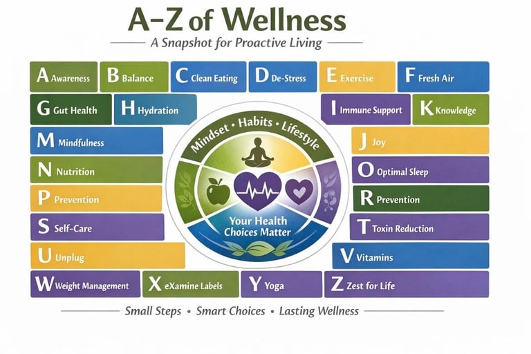 The ideas shared here form the foundation for the guides, articles, and educational resources available throughout this site. For a concise introduction to key wellness concepts—from awareness and lifestyle habits to gut health, stress management, and prevention—readers may begin with the A–Z of Wellness Mini Guide.